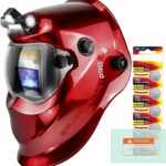 The TAKAFORCE Flip Up Auto Darkening Welding Helmet is a versatile all-in-one tool with a large 180° panoramic screen and true color technology. It has both a grinding shield and a welding shield. Users find it comfortable to wear and a good value for the money, with replacement parts included. The visor works well and offers different viewing windows. It comes in a variety of colors and has a cool look. However, the helmet has some notable drawbacks. The headgear must be removed to replace lenses and the headgear strap can break quickly. Some users find it bulky and uncomfortable. The plastic feels weak and the outer visor may not seal properly. The auto-darkening feature is sometimes unreliable, and the batteries need frequent replacement. Read more…