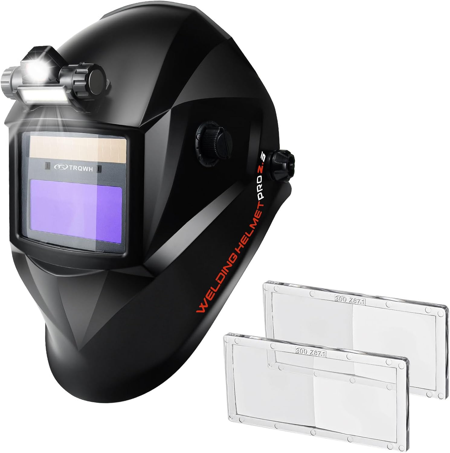 This auto-darkening welding helmet from TRQWH is an eye-protecting accessory for welders. It features a built-in light to enhance visibility and includes a 3.0 diopter magnifying lens. The hood darkens automatically to protect your eyes, and it’s easy to use.