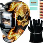 The TRQWH KTS-JD15 is a reasonably priced auto-darkening welding helmet that’s a good choice for beginners. It features a true-color, high-clarity lens with a 1/1/1/2 optical rating, and a built-in light for better visibility. The helmet also comes with heavy welding gloves and spare batteries. Users find it comfortable and light to wear, and its auto-dimming feature and easy-charging battery work well. However, some users have noted that the hood can feel flimsy and cheap, the assembly instructions are poor, and the hood doesn’t always stay in the upright position. There are also reports of the auto-dimming feature turning off unexpectedly. Read more…